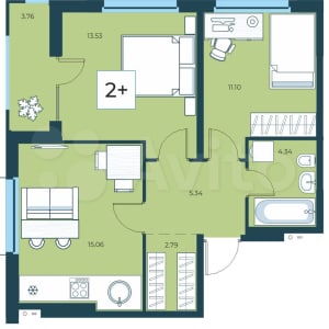 Двухкомнатная квартира формата «плюс» с угловым расположением, что дает хорошую инсоляцию и большее количество солнечного света в разное время дня. В коридоре выделена зона для гардеробной комнаты – здесь можно хранить сезонные вещи. Увеличенная кухня-гостиная - комфортное пространство, где могут собираться все члены семьи. Одна из спален с выходом на лоджию, где можно встречать утренние рассветы с чашкой кофе.