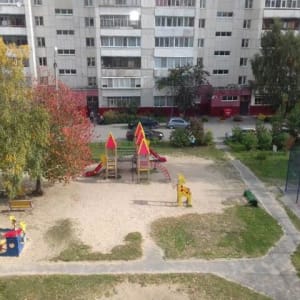 Во дворе обустроенная детская площадка, за домом спортивная площадка, вместительная парковка.
