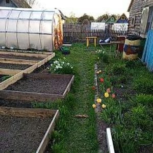 Насаждения слива синяя, слива желтая, вишня 2 куста, яблоня 3 дерева, 5 смородины, 3 крыжовника, малина, клубника 6 больших гряды. Цветы многолетние, декоративные кустарники, гортензии, глициния, гибискус, газоны и др. Соседи очень дружные.